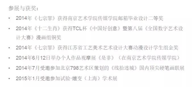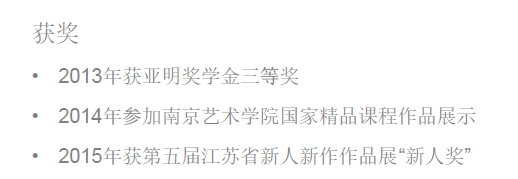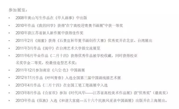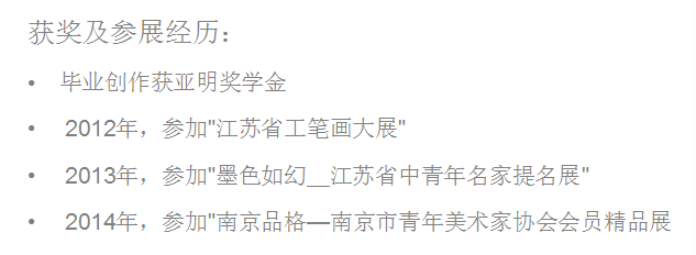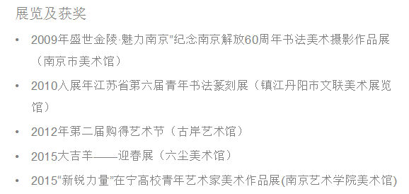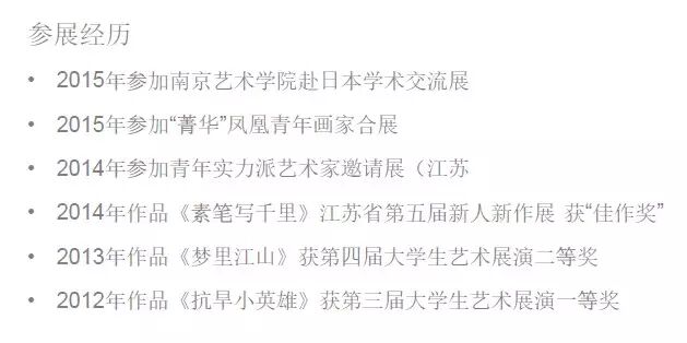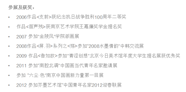 作品曾入选江苏省美术家协会第四届新人美术作品展。