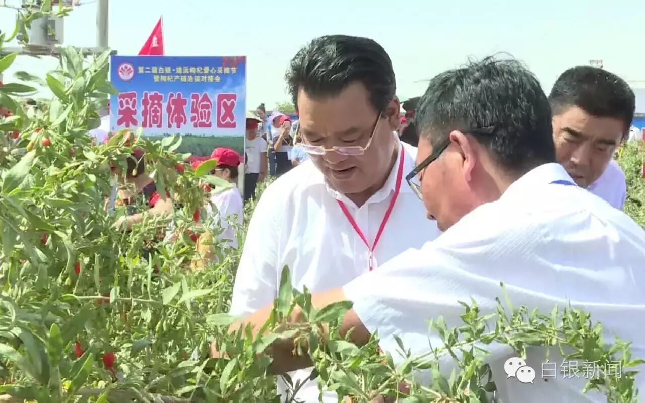今天上午,以“产业扶贫奔小康,丝路重镇展雄风”为主题的第二届白银•靖远枸杞爱心采摘节暨枸杞产销洽谈对接会,在靖远县枸杞主产区东升乡隆重开幕。省委农工办主任周兴福,市委副书记、市长张旭晨,解放军301医院输血科原主任、少将李锡金出席开幕式。