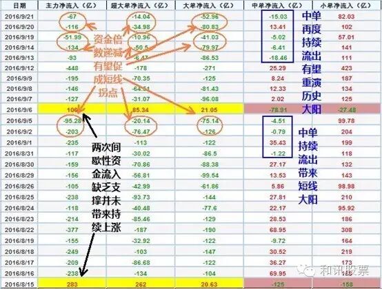 其次,从场内主力资金的监控数据(下图)来看,9月6日再现了8月15日出现的脉冲式间歇性主力资金净流入,但随后的调整也同样出现,资金异动引发的行情异动表现再度重演。近期专栏文章中连续提示目前主力资金净流出资金出现倍数递减现象,而之前这一现象出现的时候曾经激发过资金净流入引起短线阳线出现,所以此种现象再现有望促成短线变盘拐点。加之此前曾经出现过中单持续几日净流出导致短线阳线爆发的现象再度出现,个人认为历史再度重演的概率不断增大,市场短线反弹诱因明显增多。