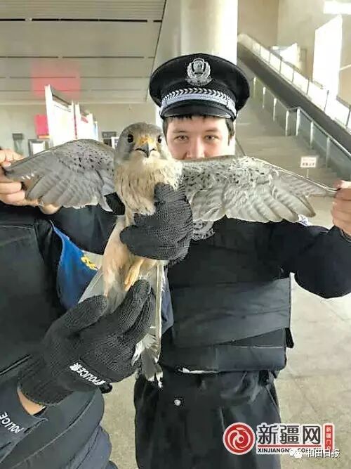 “这就是猎隼,由于它还是幼鸟,体力不支,误打误撞飞进了和田火车站候车室,给它喂些食物和水,等它恢复体力就可以放飞了!”当地林业部门的工作人员说。随后,林业部门的工作人员和铁路民警一起将健康的小猎隼放生回归了大自然。