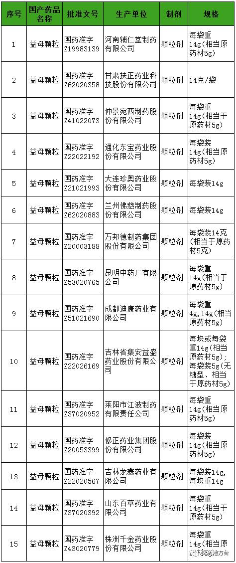 此外,,目前生产益母颗粒的药企有15家,包括河南辅仁堂制药有限公司、甘肃扶正药业科技股份有限公司等。