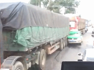 事故发生后,该侧路段车辆通行受阻,相反方向车道正常通行。交警已前往事故发生地进行道路疏通与事故责任处理!现场动图
