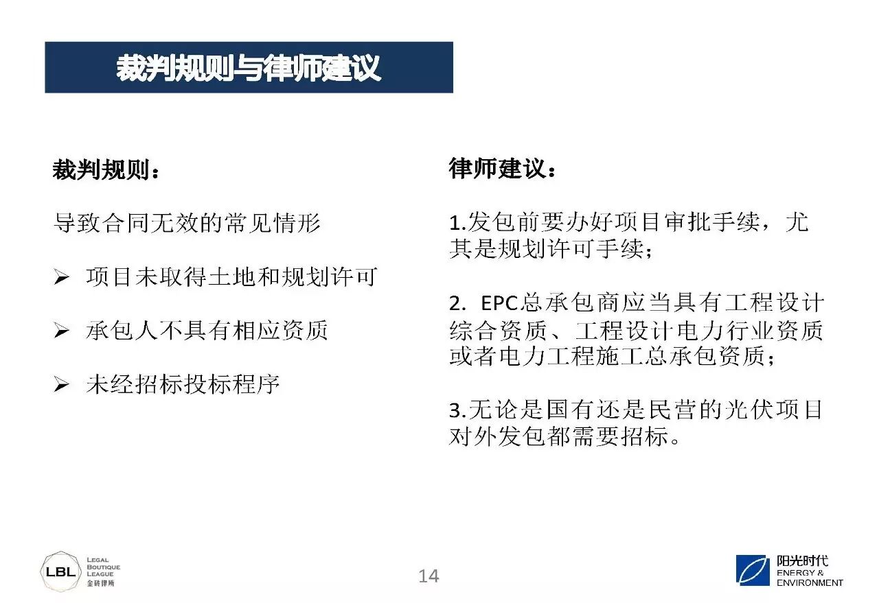 比如,一个光伏业主和总承包商未经招投标签署了EPC合同,后来发生争议,。首先是合同是否有效,如果无效,合同约定的争议管辖的条款是否具有约束力。,。一准备打官司,我们马上就会面临非常多的法律问题,。