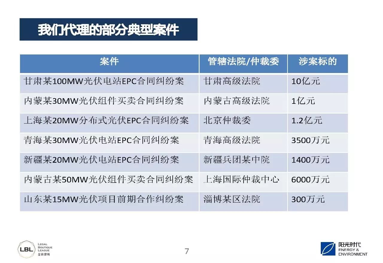 跟大家汇报一下我们代理的部分典型案件。这些年我们在EPC合同纠纷和组件买卖合同纠纷中处理了很多案件。
