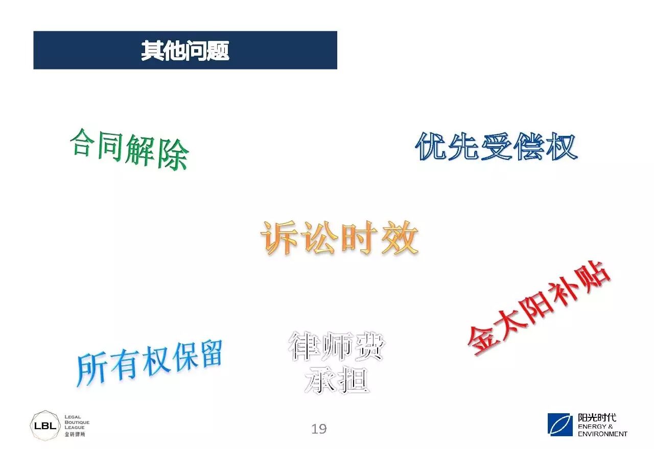 没有到现场的伙伴们,只要关注阳光所微信公号(sunshinelaw),并在公众号里回复关键词“光伏工程”,就可以看到郝利律师演讲的完整版PPT啦!