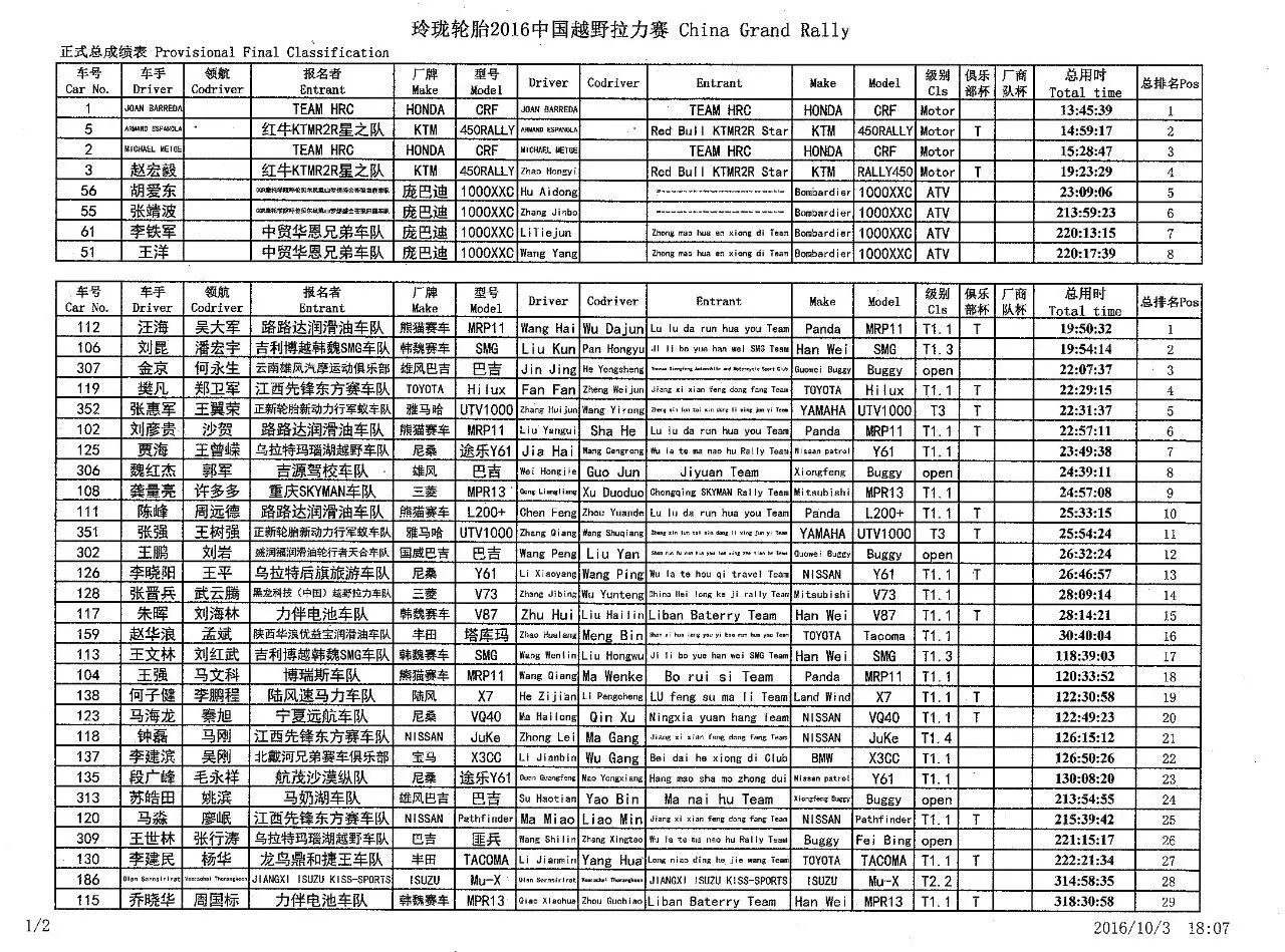 摩托车组来自本田HRC车队的胡安.巴雷达是自大越野创办以来,拿下摩托车组别全赛段冠军的第一人。从第一赛段到第八赛段,胡安.巴雷达以超完美的发挥拿下全赛段的冠军,不愧为达喀尔的优秀车手。每次赛后采访胡安.巴雷达都表示非常喜欢中国的赛道,河道、戈壁、沙漠,很刺激、很美丽。本田HRC车队来参加本次大越野的目的很明确——为2017达喀尔拉力赛测试的。从结果看,本次测试是非常成功的。