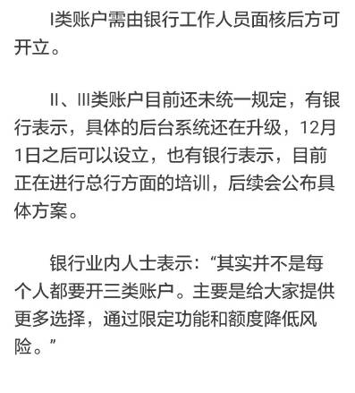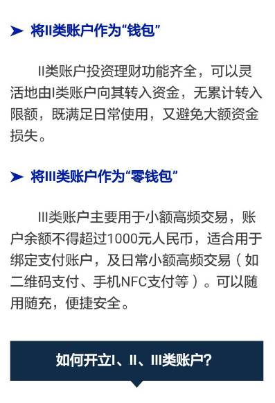 据某银行工作人员介绍,如果是使用Ⅰ类账户绑定了支付宝、微信,用于日常消费,为了保障账户资金安全,可以将Ⅰ类账户下调为Ⅱ类或Ⅲ类账户,只需存款人经过基本的身份确认就可以。但Ⅱ类或Ⅲ类账户要升级成为Ⅰ类账户,对客户身份核实的要求更高一些,会要求客户去网点现场核验身份。