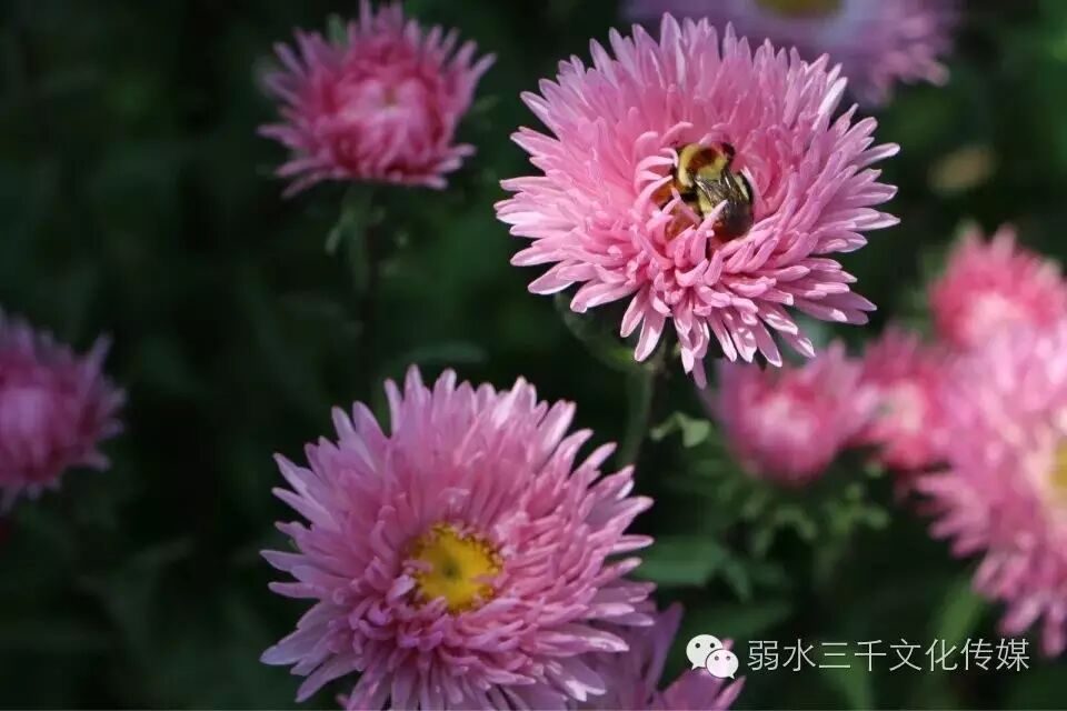 初夏时节,风掠过,雨打过,生长在高台的花儿随风而去,轻旋起舞,香气欲染,恍若一位曼妙佳人着粉色轻裳留下残影一般,浪漫而美丽,花随人舞,人醉花舞风中。