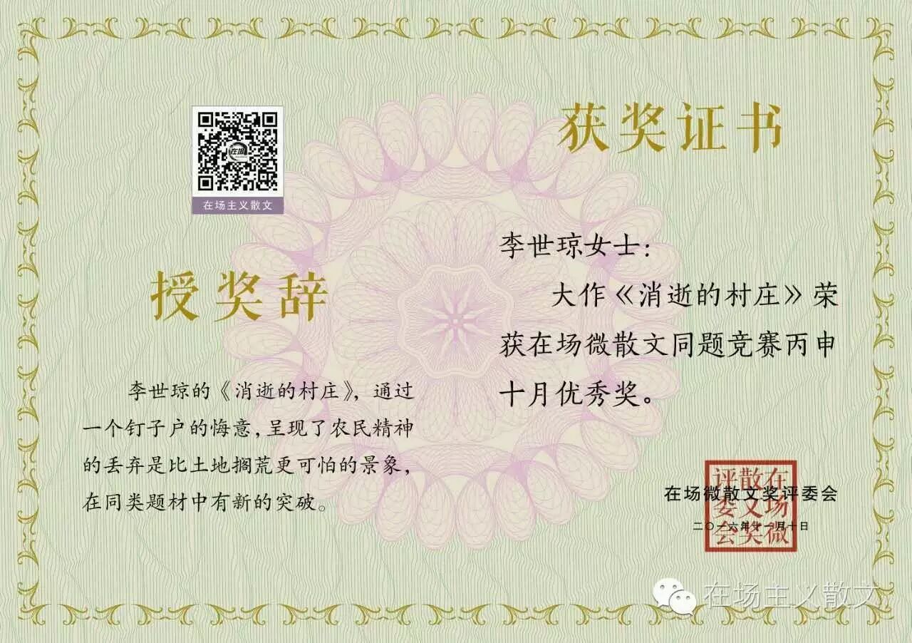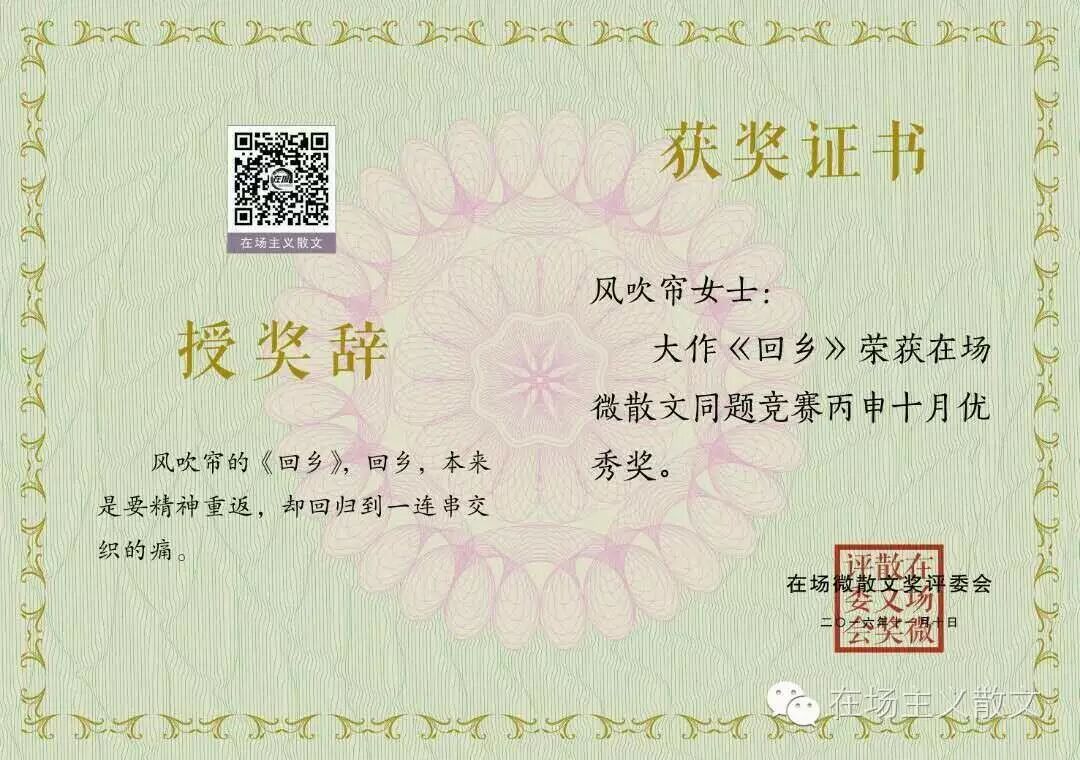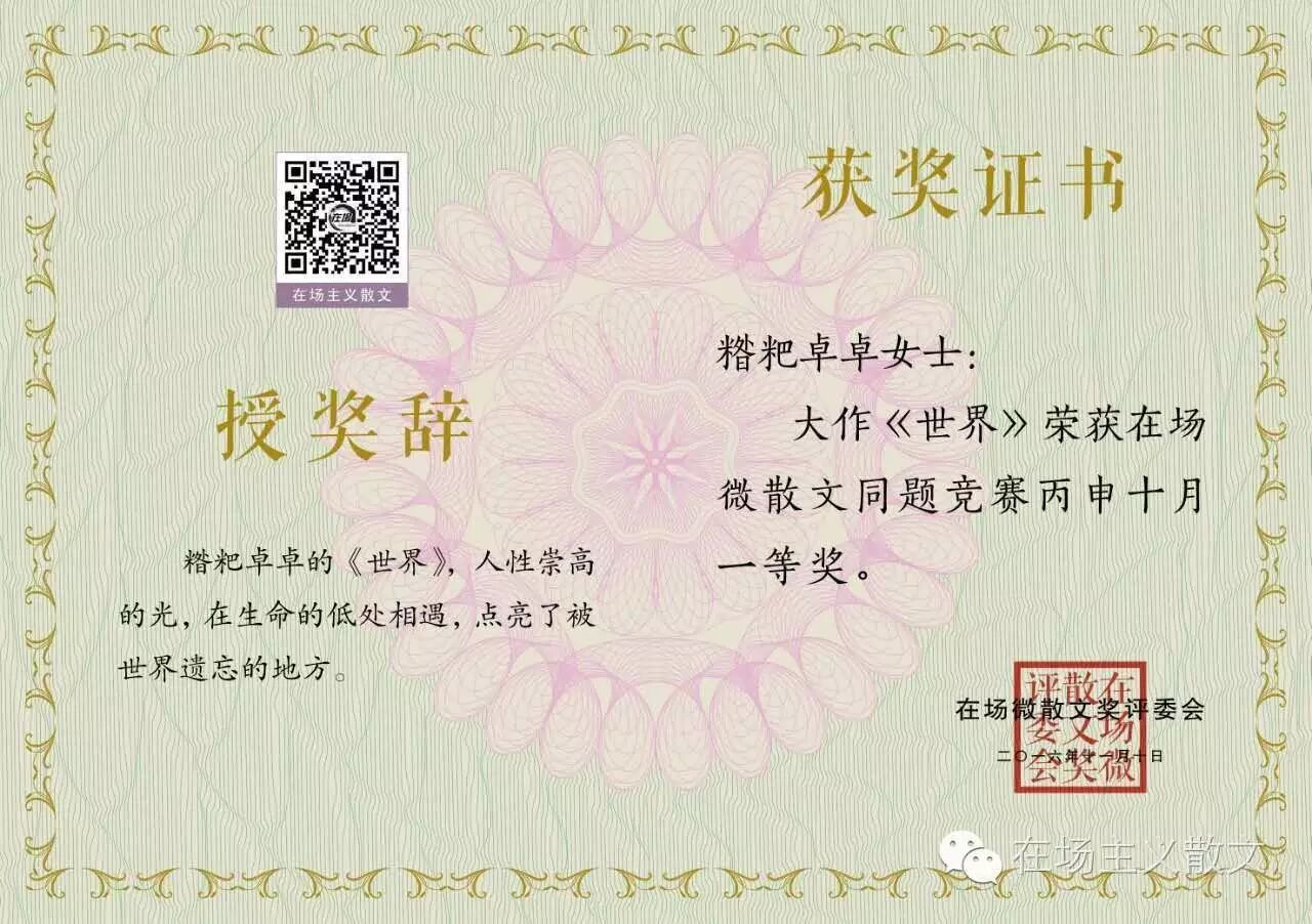 在场微散文奖颁出首期