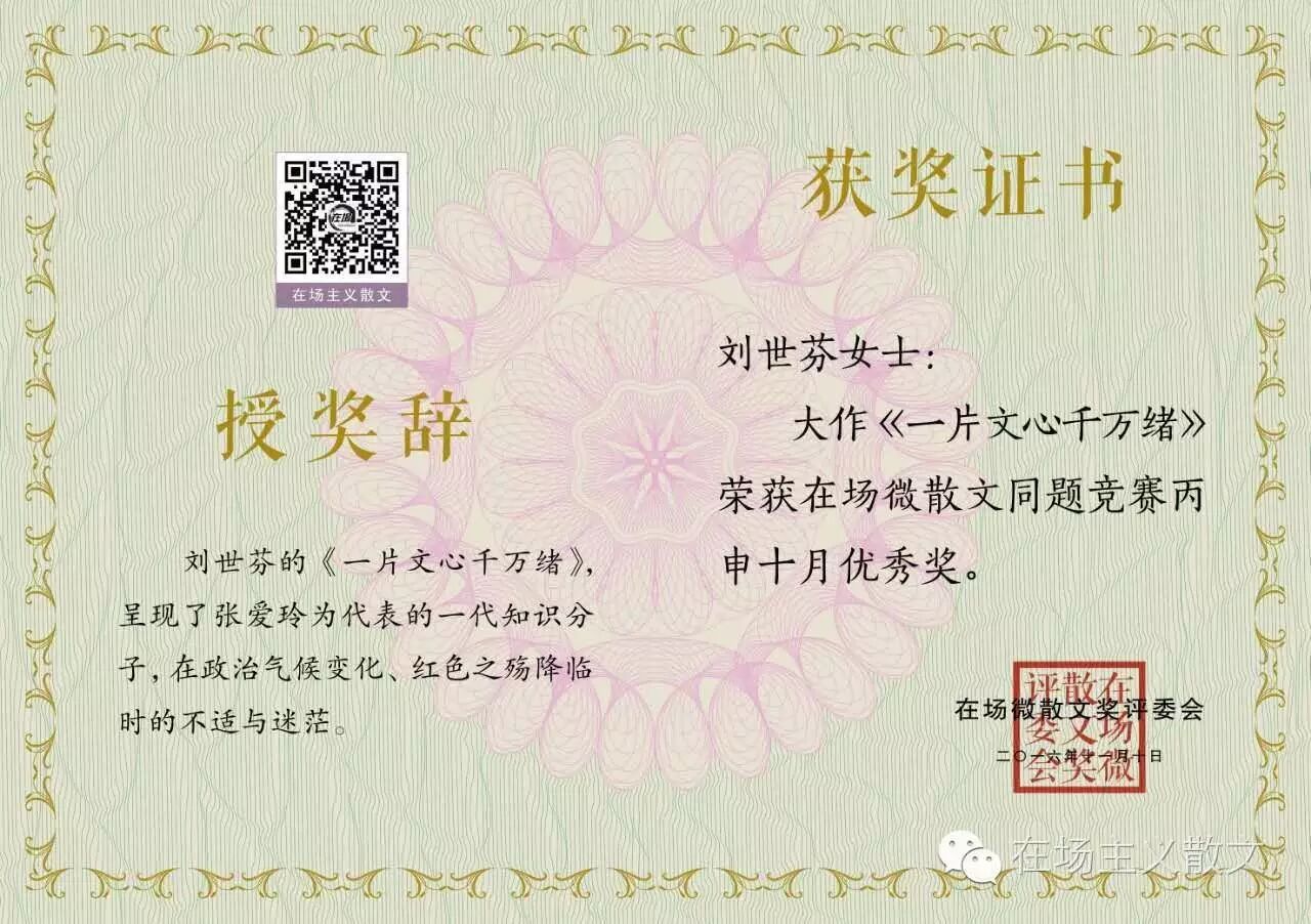 在场微散文奖颁出二期