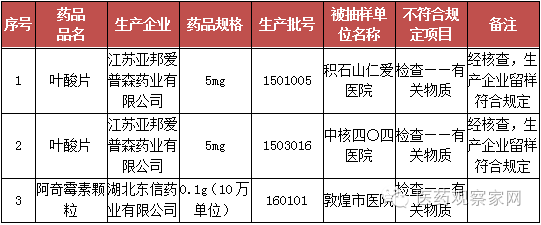 9月27日,甘肃省药监局发布《药品质量公告2016年第107期(总第233期)》,3批次药品不符合规定。