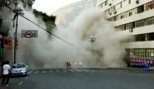 当地一位居民说,两栋居民楼靠近道路南侧山坡,那里是交通路岔口,还设有公交车站点,因为事故发生在早上7点多,又正值国庆放假期间,所幸路上行人较少。