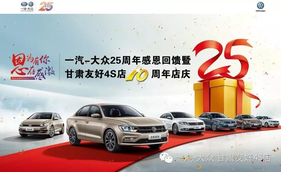 一汽大众25周年感恩&甘肃友好4S店10周年店庆全系出击,钜惠到底!