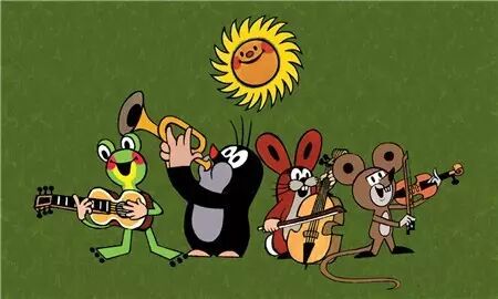 青蛙伸长舌头在野外捕食,这时看见田鼠巴依掂着吃撑的大肚子从远处走来。于是他张开大嘴问:“嘿,田鼠巴依,今天又去哪里偷吃了?”