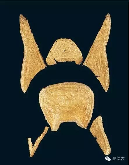 锤蹀錾刻镂空花卉金冠饰(敖汉旗博物馆藏)