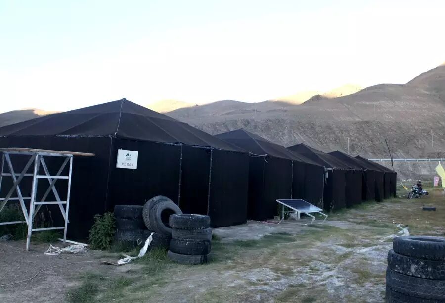 可能是由于昨天太累的缘故吧,一路从云南徒步搭帐篷的小于,并没有选择自己搭帐篷过夜,而是住进了这个黑帐篷营地,今天才彻底看它的模样,真的是名副其实。