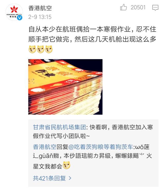 香港航空表示捡到寒假作业,