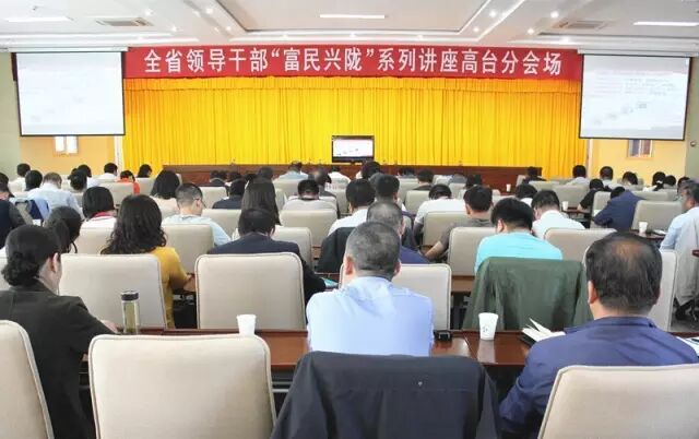 5月28日上午,2016年全省领导干部“富民兴陇”系列讲座第六讲在甘肃省委党校大礼堂举行。、。全县四大班子在家领导,各镇、县属各部门(单位)副科级以上干部,县委人才工作领导小组成员单位人才工作分管领导,共计170人在高台分会场收看收听了报告。