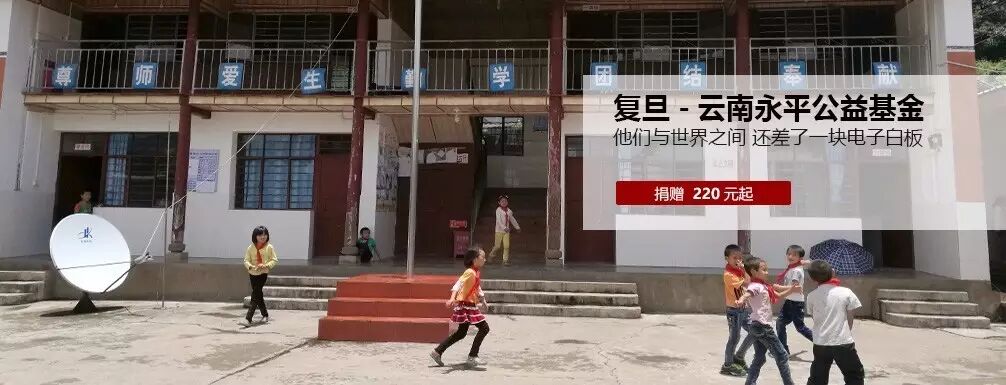 2016年1月,复旦大学校友会联合复旦大学教育发展基金会设立“复旦—云南永平公益基金”项目。首批募款基金希望购买22块交互式电子白板,有了它们,永平孩子将有机会通过远程教育享受上海的“智慧课堂”。