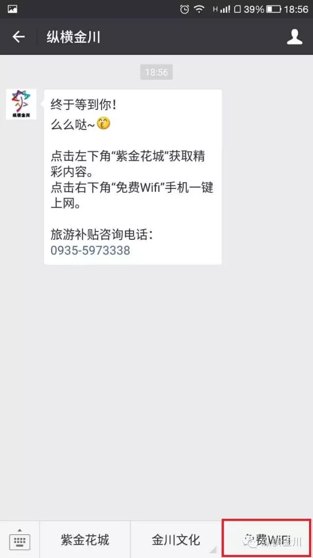 ➤关注成功后,如图点击右下角【免费Wifi】,即可一键连接免费上网!就是这么简单!