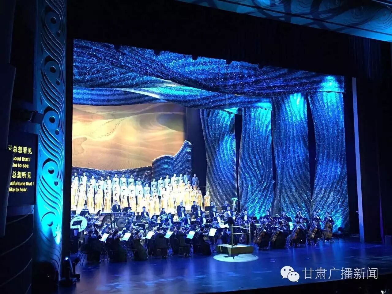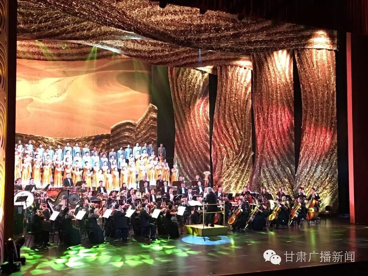 为庆祝丝绸之路(敦煌 )国际文化博览会圆满闭幕,昨晚,甘肃省重点舞台剧目大型交响合唱《梦回敦煌》在甘肃省大剧院精彩上演。