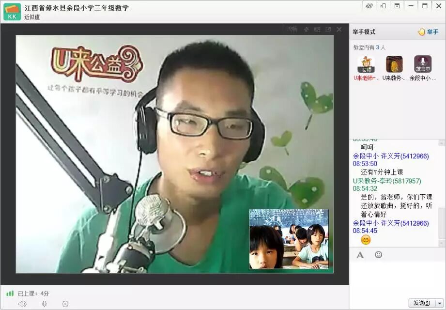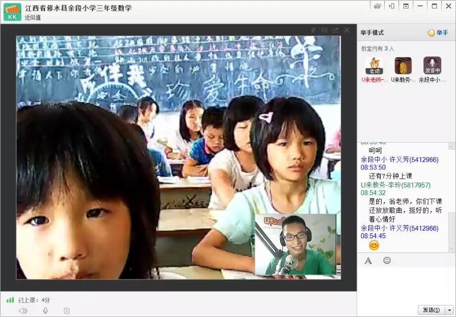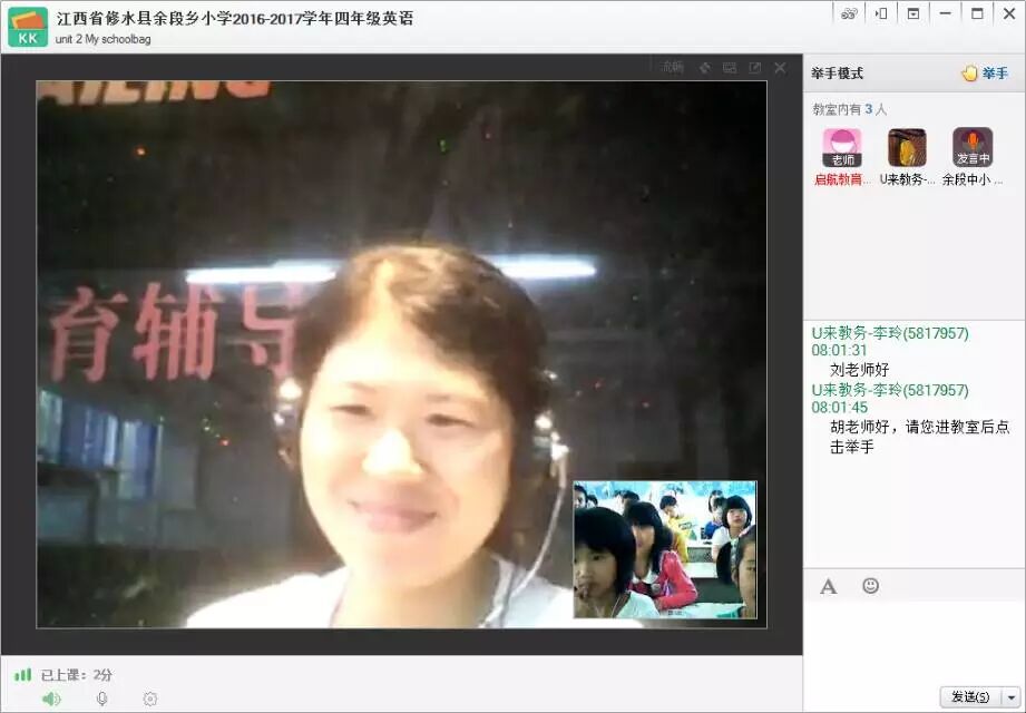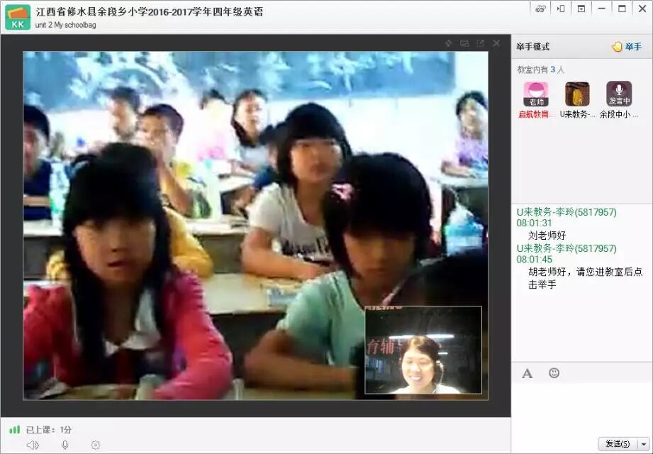 过完中秋节,上课第一天,余段小学四年级英语课,刘娇老师和学校胡老师都早早进教室,网络很给力,大多数同学都很认真,精神状态不错。假期结束,快来好好学习,不要浪费了这大好的光阴哦!