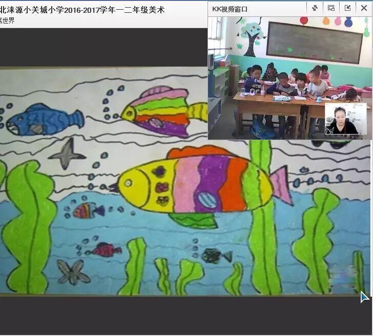 小关城的同学们一上课首先看到了多彩的海底世界,来说说你都认识哪些动物吧!认识了海底的小动物后,陈老师带大家认识了鱼的构成,下面就拿起画笔画出自己心中的海底世界吧!