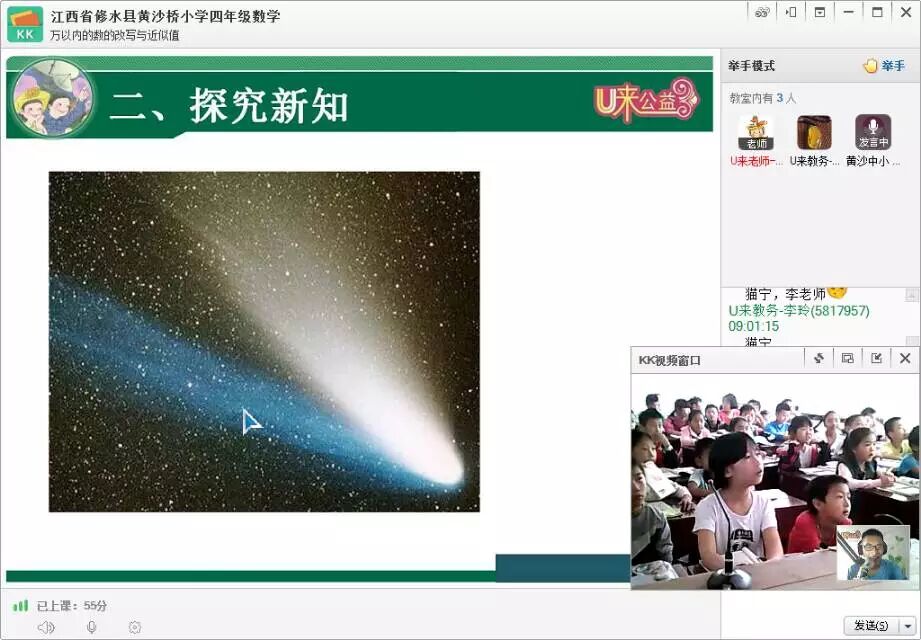 江西黄沙桥小学数学课,复习了大数的内容,还了解了宇宙新知。同学们看到李老师放的宇宙各星球的照片就会兴奋的大叫。