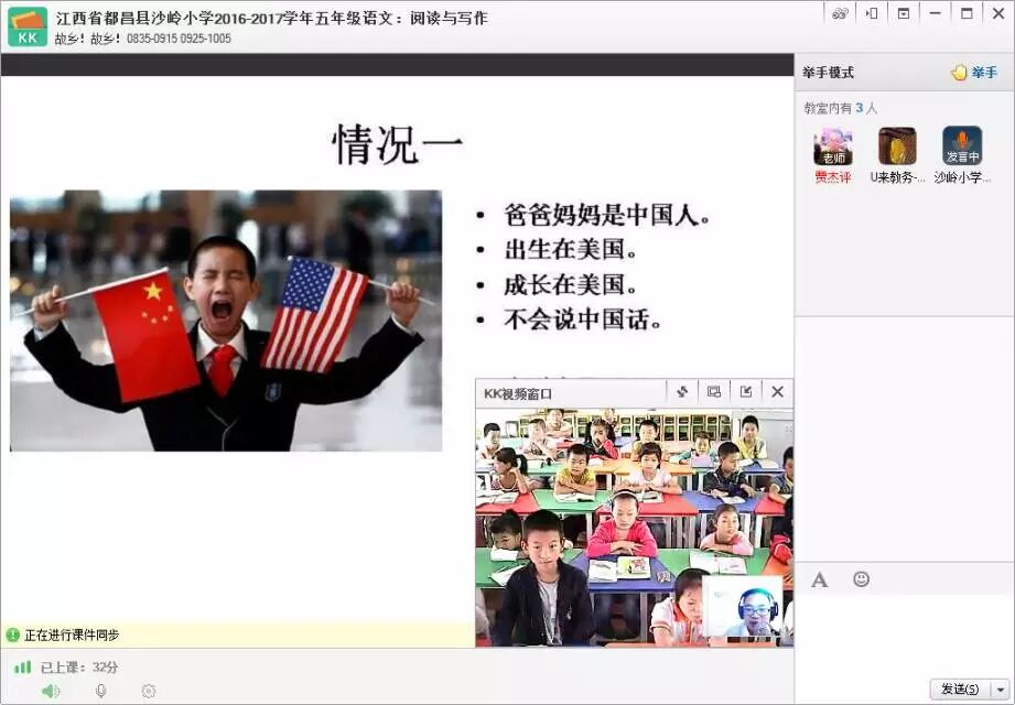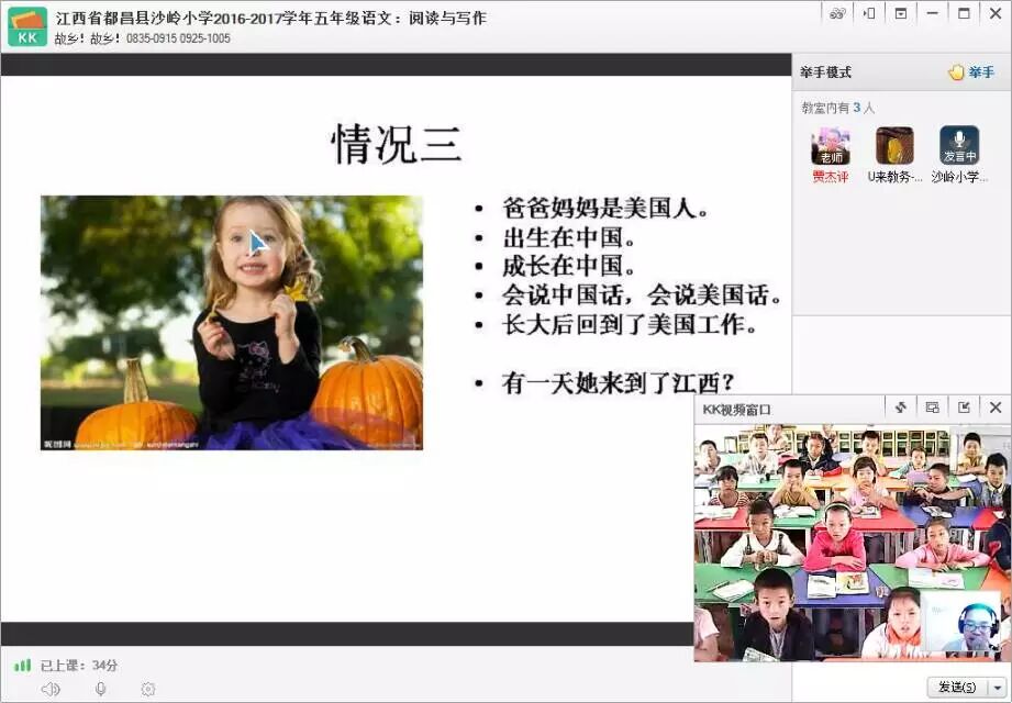 江西沙岭小学语文阅读写作课,今天讲讲故乡。贾老师问:一个女孩,她爸爸妈妈是美国人,但她自己是出生在中国,成长在美国,那她的故乡是哪里呢?同学们貌似有点懵了。