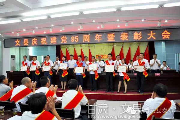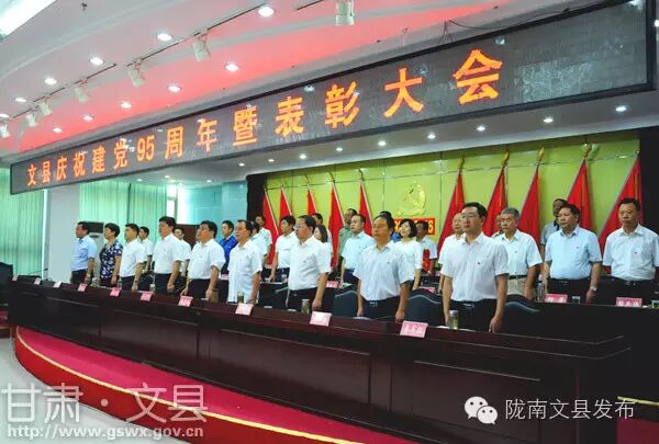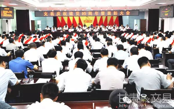6月29日,文县召开庆祝建党95周年暨表彰大会,动员全县各级党组织和广大党员学习先进、创先争优,立足“十三五”发展的新起点,担负起脱贫攻坚和全面小康的重大历史使命,为加快文县科学发展做出新的更大贡献。