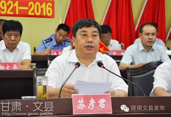 苏彦君指出,五年以来,县委在省市委的坚强领导下,大力实施“项目带动立县、特色经济强县、基础建设活县、社会和谐兴县”发展战略,真抓实干,开拓进取,超额完成了“十二五”时期各项目标任务,经济社会发展取得了重大历史性成就。2015年底,全县生产总值达23.58亿元,比“十一五”末增长了 76.2%;三次产业结构之比由“十一五”末的25:39:36调整到“十二五”末的22:27:51,产业结构更加优化;完成大口径财政收入4.01亿元,与“十一五”末相比增长了79.5%;完成公共财政收入2.12亿元,全社会消费品零售总额6.3亿元,城镇居民和农民人均可支配收入分别达到18195元、4963元,与“十一五”末相比四项指标分别翻了一番,全县经济社会保持了稳中有进、健康发展的良好态势。特别是面对文县作为国列贫困县的客观现实,着力在增加贫困群众收入、减少贫困人口上下功夫,全县贫困人口减少到了2015年底的4.5012万人,五年累计减少了8.6403万贫困人口,贫困发生率降低了40个百分点,脱贫攻坚取得了阶段性重大成效,为与全省、全市同步进入全面小康社会奠定了坚实基础。