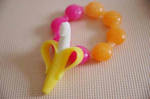 牙刷套装,美国The first years,有宝宝刚出牙到三岁用的所有牙刷,满足各阶段的刷牙需要。宝宝特别喜欢用这个指套牙刷,给他磨磨牙床很舒服的样子。