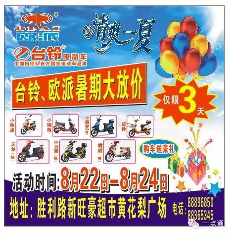 好消息:8月22-24日台铃、欧派两大品牌强强联手!多款低价车,另有豪礼相送!